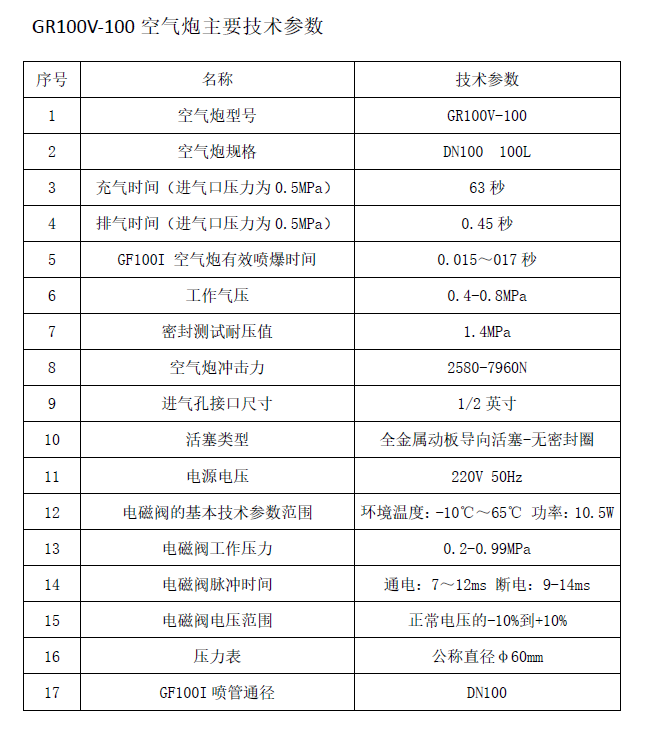 GR100V-100耐高溫空氣炮特點(diǎn):